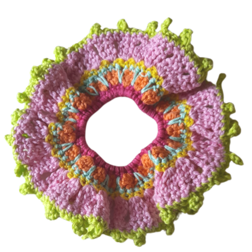 12 cm wide Scrunchie, just a bit bigger than our regular ones. Homemade in the sunshine.